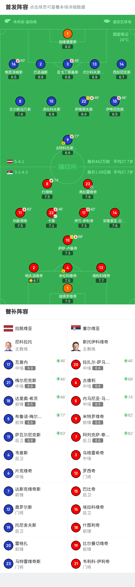 塞尔维亚1-0拉脱维亚,弗拉霍维奇一锤定音 2026-01-12 12:57:47 意甲 0 9 北京时间9月6日世界杯欧洲区预选赛 第一阶段小组赛 第5轮,拉脱维亚对阵塞尔维亚。塞尔维亚弗拉霍维奇破门。最终比分拉脱维亚 0-1 塞尔维亚。精彩瞬间第12分钟,塞尔维亚球员卡泰助攻弗拉霍维奇打入一球。球队阵容技术统计 # 上一篇:芬超:瓦萨vs哈卡比分预测 实力伯仲谁能先找回状态 # 下一篇:华体会-苏群:我认为卢指导是好教练 活用哈登&小卡证明其临场调整能力强 也许您对下面的内容还感兴趣: 给您推荐相同类型的内容: 罗马诺:莱奥尼完成体检,他将与利物浦签约至2031年 8月15日讯 据知名记者罗马诺的消息,莱奥尼完成体检,他将与利物浦签约至2031年。罗马诺社媒写道:“乔瓦尼·莱奥尼已经完成了主要部分的体检,并签署了作为利物浦新球员的合同。此外,据独家报道莱奥尼与利物浦签下了一份6年的合同,有效期至2031年6月。本周将发布官方公告。”... HTH.com-斯洛特:曼联开局侵略性很强 我们的逼抢收到成效 体坛周报全媒体原创 英超双红会,利物浦客场3比0完胜曼联。路易斯·迪亚斯双响,萨拉赫1射2传。赛后接受采访,利物浦主帅斯洛特表示,“曼联开场后侵略性很强,因此我们必须要找到应对办法。当你来到老特拉福德,你当然知道会面临一些艰难的时刻。在一粒进球被吹掉后,我们继续保持节奏,我认为我们配得上获胜。” “我们一直希望高位逼抢。上赛季曼联在中场采用人盯人战术,这个赛季他们保持着9到10个人的压迫,... 华体会HTH-土耳其教练回击穆帅:若有其他选择,你会来土超吗? 体坛周报全媒体原创 土超联赛第11轮,费内巴切凭借着阿姆拉巴特的补时绝杀,客场3比2战胜特拉布宗体育。费内巴切主帅穆里尼奥赛后再次成为焦点。此役费内巴切两次被判罚点球,且两次判罚都是由VAR裁判提醒。赛后接受采访,穆帅火力全开怒喷裁判,并表示自己是在带领球队“对抗系统”,“我们要与我们的对手进行比赛,但同时,我们还需要对抗这个系统。我们要对抗这么多大人物,赢下这场比赛真是不可思议。” “我... 华体会-苏群:我认为卢指导是好教练 活用哈登&小卡证明其临场调整能力强 ... 塞尔维亚1-0拉脱维亚,弗拉霍维奇一锤定音 北京时间9月6日世界杯欧洲区预选赛 第一阶段小组赛 第5轮,拉脱维亚对阵塞尔维亚。塞尔维亚弗拉霍维奇破门。最终比分拉脱维亚 0-1 塞尔维亚。精彩瞬间第12分钟,塞尔维亚球员卡泰助攻弗拉霍维奇打入一球。球队阵容技术统计...